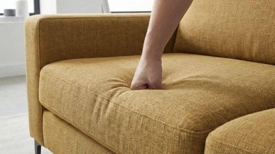 低/中密度泡棉(約 20~25kg/m³): 常見於廉價或量產沙發,初期坐感柔軟,但支撐結構鬆散,長期受壓容易斷裂崩塌,壽命通常僅約 1~3 年。